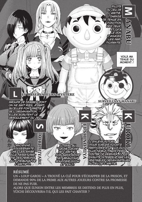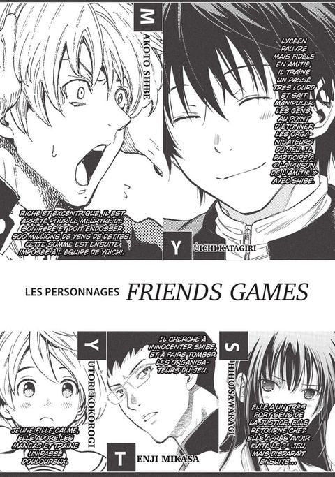 Shiho Sawaragi se fait voler l'argent du voyage de classe dont elle était responsable. Le coupable est forcément l'un de ses camarades de classe ! Quelques jours plus tard, cinq élèves dont Shiho sont enlevés et forcés de participer au « jeu de l'amitié » afin de rembourser la dette de l'un d'entre eux. S'engage alors une guerre des nerfs sur fond de calculs, trahisons et révélations blessantes entre amis...
