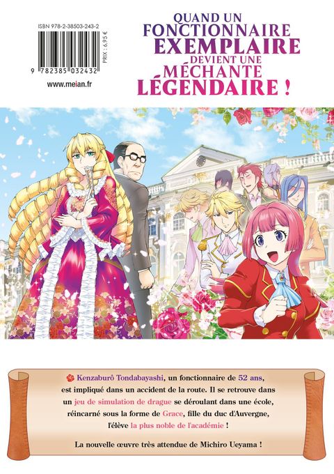 De la bureaucratie à la noblesse, une réincarnation épique & hilarante !Suite à un accident de la route, Kenzaburô Tondabayashi, un fonctionnaire de 52 ans, se retrouve dans un jeu de simulation de drague réincarné sous la forme de la noble Grace, la méchante ! Avec son expérience de père et sa sagesse d'adulte, il bouleverse les règles du jeu dans une comédie aussi hilarante que touchante.Quand un fonctionnaire exemplaire devient une méchante légendaire !