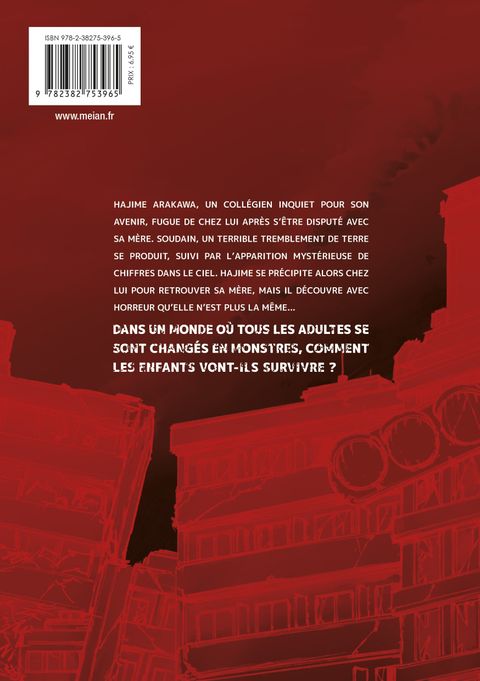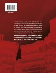 Une effroyable histoire d'horreur et de survie !!Hajime Arakawa, un collégien inquiet pour son avenir, fugue de chez lui après s'être disputé avec sa mère. Soudain, un terrible tremblement de terre se produit, suivi par l'apparition mystérieuse de chiffres dans le ciel. Hajime se précipite alors chez lui pour retrouver sa mère, mais il découvre avec horreur qu'elle n'est plus la même...Dans un monde où tous les adultes se sont changés en monstres, comment les enfants vont-ils survivre ?Plus le danger est familier... plus le désespoir est grand !Cette série en deux tomes de Naoto AKIYAMA propose une histoire horrifique, sombre et cruelle, qu'on pourrait assez facilement voir comme une métaphore du passage à l'âge adulte. Les enfants ont-ils changé de monde, ou est-ce le monde lui-même qui a changé ? Comment vont-ils réussir à s'organiser pour lutter contre les créatures qui les menacent ?