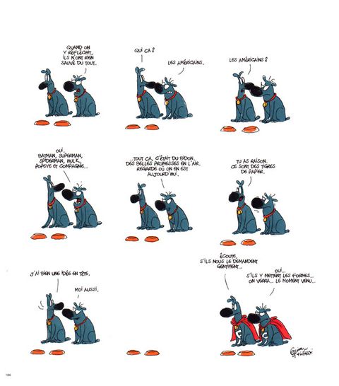 Froud et Stouf sont deux petits chiens bleus (un peu) philosophes à l'allure sympathique et débonnaire créés par Frédéric Jannin (dessins) et Stefan Liberski (scénario). Froud et Stouf conversent et portent un regard amusant et amusé mais toujours pertinent sur le monde qui les entoure. Deux albums de bande dessinée sont sortis par le passé, il était temps de rendre à nouveau disponible les discussions décalées et drôles de nos chiens belges dans une édition qui leur rend hommage. Ce volume reprend la plupart des planches déjà parues dans Les gens adorent et Waf waf auquelles s'ajoutent les planches parues dans Spirou et ailleurs ainsi que de nombreuses planches inédites. Ces personnages connaissent aussi une version adaptée en dessin animé qui passera dès septembre à la télévision sur BX1 en début de soirée.
