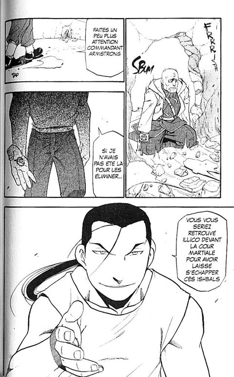 Central City est, plus que jamais, le centre d'un obscur complot aux ramifications dépassant l'imagination de nos protagonistes. Le colonel Mustang voit son unité démantelée tandis qu'Edward et Alphonse doivent faire face à l'énigmatique géniteur des homonculus. Ce dernier réussi à rallier Lin à sa cause, le prince de Xing succombant aux pouvoirs de la pierre philosophale. Bien décidé à percer les mystères qui s'amoncèlent, Edward se rend chez Riza Hawkeye où le lieutenant va lui relater les terribles chroniques de la guerre d'Ishbal. Un flashback passionnant au coeur de ce conflit primordial pour mieux appréhender les luttes de pouvoir qui agitent Amestris !