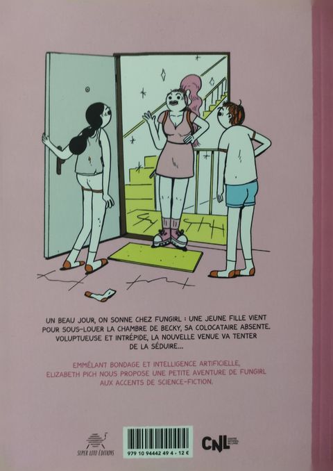 Tandis que Fungirl se chamaille comme toujours à la maison avec Peter, l’amoureux de sa colocataire Becky (et ex petite amie), on sonne à la porte : une jeune fille vient pour sous-louer la chambre de Becky pendant son absence. Personnalité qui n‘a pas froid aux yeux, la belle et pas si innocente jeune femme tente (avec succès) de séduire Fungirl, et essaie de corrompre le bel esprit bien-pensant de Peter. Jusqu’à que ce que la ficelle soit trop grosse, et dépasse la ligne rose pour devenir garrottage physique et ligotage mental… Dans cette aventure secondaire de Fungirl, on retrouve tous les ingrédients qui font le succès de l’héroïne d’Elizabeth Pich : l’inconstance et la légèreté déraisonnable de Fungirl, le triangle amoureux et chaotique avec Becky et Peter, une aventure dans l’appartement que l’on connaît déjà bien… à la différence que Becky est hors-champ dans cette petite histoire, à faire ses études loin de chez elle, et Peter souffre de son absence jusqu’à douter d’elle. Pendant ce temps, Fungirl, fidèle à elle-même, accueille un élément perturbateur qui va faire basculer le récit dans de la science-fiction, emmêlant bondage et Intelligence Artificielle…