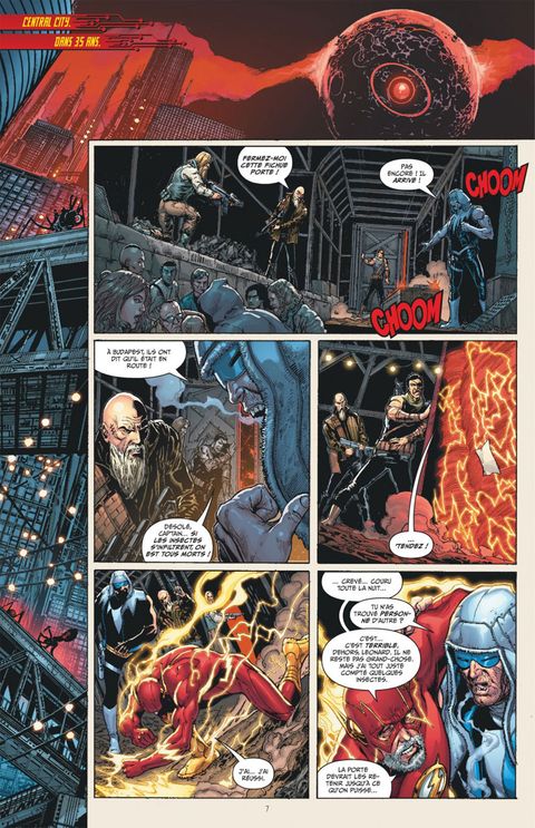 Trente-cinq ans dans le futur : le satellite l'oeil devenu indépendant a mis sous sa coupe la quasi-totalité des super-héros, modifiés en cyborgs implacables. Les derniers justiciers encore libres mènent une résistance désormais futile et succombent les uns après les autres. Le dernier espoir réside dans le jeune Terry McGinnis, le successeur de Bruce Wayne en tant que Batman, téléporté dans le passé pour empêcher l'émergence de cette menace. Mais ce dernier arrive cinq ans trop tard.