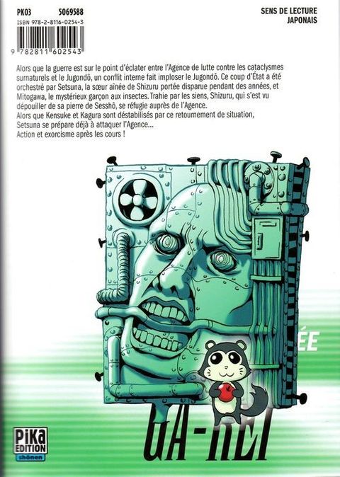 Alors que la guerre est sur le point d'éclater entre l'Agence de lutte contre les cataclysmes surnaturels et le Jugondô, un conflit interne fait imploser le Jugondô. Ce coup d'Etat a été orchestré par Setsuna, la soeur aînée de Shizuru portée disparue pendant des années, et Mitogawa, le mystérieux garçon aux insectes. Trahie par les siens, Shizuru, qui s'est vu dépouiller de sa pierre de Sesshô, se réfugie auprès de l'Agence. Alors que Kensuke et Kagura sont déstabilisés par ce retournement de situation, Setsuna se prépare déjà à attaquer l'Agence...Action et exorcisme après les cours !