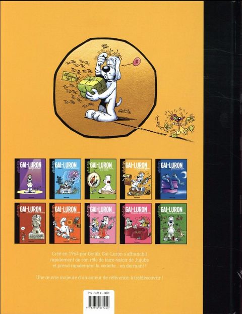 Attention, oeuvre culte ! Au moment où paraissent de nouvelles aventures de Gai-Luron, sous la signature de Gotlib, Fabcaro et Pixel Vengeur (sortie en octobre), Fluide Glacial poursuit la réédition en couleurs des premiers albums de la série créée et illustrée par Gotlib ! Créé en 1964 dans les pages du journal Vaillant (Pif), Gai-Luron est la première oeuvre d'un génie du 9e Art, Gotlib. Tout d'abord faire-valoir de Jujube, l'un des personnages récurrent du journal, Gai-Luron, le chien endormi, devient rapidement un héros à part entière, et développe son propre univers : Belle-Lurette, dont il est amoureux et avec qui il joue beaucoup à la bataille navale, Jean-Pierre Liégeois, le lecteur du Var... Au fur et à mesure des pages, on voit se développer l'univers d'un grand auteur, annonçant les succès futurs dans Pilote et bien sûr dans Fluide. Histoires courtes, parodies (Zorro, Prince Vaillant, Tarzan, PIF...), détournement de fables (Perette et le pot au lait...), on retrouve là, hilarantes et méconnues, de précieuses perles annonçant la Rubrique à brac ! La suite de la collection en 2017 !