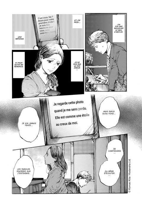 Dans les jardins secrets de chacun, des fleurs éclosent par la force des liens créés... Les protagonistes partagent des émotions à travers leurs lectures, et les raisons de leurs douleurs se révèlent progressivement... Makoto et Seijirô continuent à tisser la toile de leur relation et leurs échanges commencent à illuminer leurs vies respectives... et atteignent également leurs proches, y compris l'ex-fiancé de Makoto !Le rideau se lève sur un tout nouveau monde dans ce volume 2 où tous les personnages se rejoignent !Ce tome comprend également deux histoires bonus.