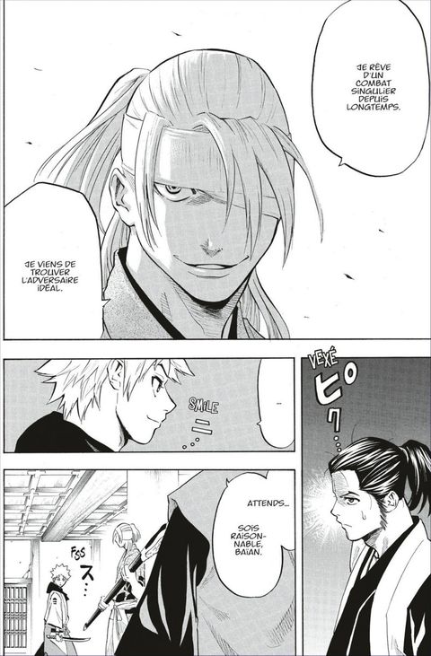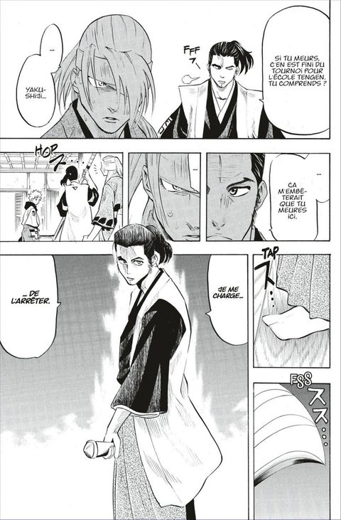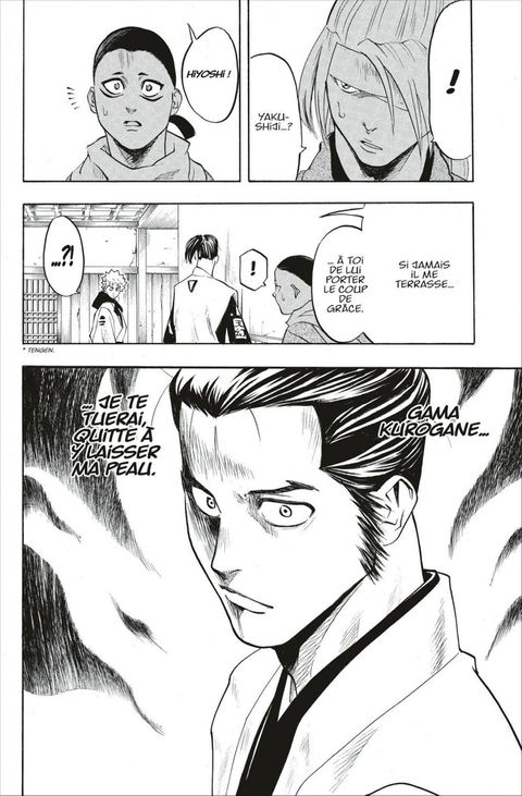 Le combat contre le style Tengen s’achève par la victoire de Gama, mais celui-ci a tout de même été sérieusement touché au bras. Alors qu’il va faire un rapport à Naoyoshi, il rencontre un homme étrange nommé Kudô Shimon qui lui annonce que les deux styles restants qu’il doit affronter, le style Kyôsen et le style Nakaizumi, sont des adversaires redoutables qu’il ne faudra pas négliger. D’ailleurs, dès la fin de sa conversation avec Kudô, il est pris en embuscade par l'archer du style Nakaizumi, à la précision...mortelle.Comment Gama va-t-il s’en sortir face à un ennemi invisible, lui qui est déjà épuisé par son premier combat ?!