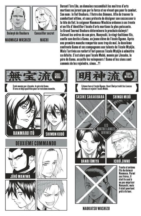 L'école Myôjin a déclaré forfait face à l'école Ôgame. Alors que Gama et ses compagnons pensaient être sortis vainqueurs de la deuxième manche du Grand tournoi Unabara, ils tombent dans une embuscade tendue par l'école Muhô. Les assaillants exigent que Naoyoshi leur soit livré, et soumettent une alternative à l'école Ôgame : se joindre à l'école Muhô ou mourir.