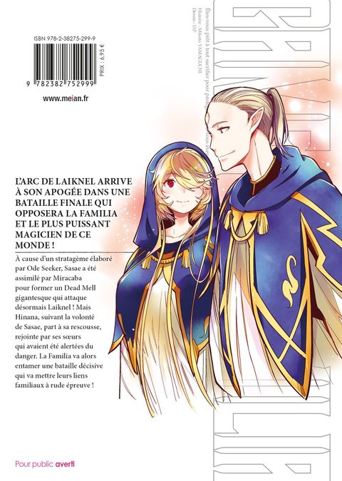 L'arc de Laiknel arrive à son apogée dans une bataille finale qui opposera la Familia et le plus puissant magicien de ce monde !À cause d'un stratagème élaboré par Ode Seeker, Sasae a été assimilé par Miracaba pour former un Dead Mell gigantesque qui attaque désormais Laiknel ! Mais Hinana, suivant la volonté de Sasae, part à sa rescousse, rejointe par ses soeurs qui avaient été alertées du danger. La Familia va alors entamer une bataille décisive qui va mettre leurs liens familiaux à rude épreuve !Alors que les idéaux s'entrechoquent, l'arc de Laiknel approche de son apothéose !!