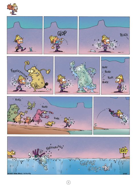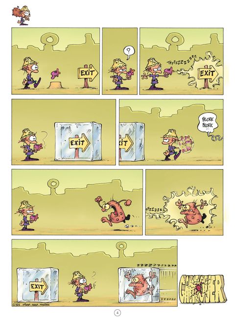 Compilation Monstres & Cie. Les Blorks ne sont ni très beaux, ni très intelligents, c'est vrai... Mais on peut tout de même leur reconnaitre une qualité : l'obstination. Ils mettent tant de coeur à l'ouvrage ! Ce sont de vrais passionnés et, face à tant d'acharnement, il est impossible de ne pas succomber. A chaque fois qu'ils parviennent à écraser, mordre, brûler ou éviscérer le Petit Barbare, on tombe sous le charme de leurs sourires béats. On ne leur en veut même pas de reproduire encore et toujours le même méfait. Parce qu'en plus, ils ont le bon goût de rester imprévisibles et de ne jamais provoquer un Game Over deux fois de la même manière. Retrouvez un florilège des meilleurs gags mettant en scène les Blorks de Game Over, best-seller de Midam déjà vendu à plus d'1 million d'exemplaires !