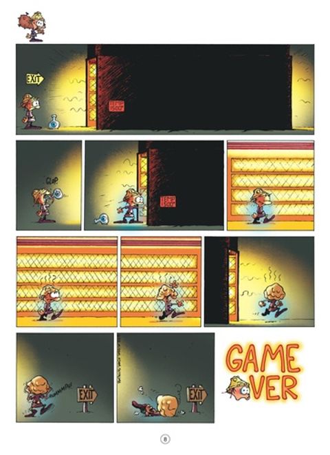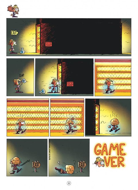 On fait difficilement plus simple comme jeu vidéo : un petit héros particulièrement maladroit, une princesse stupide, hystérique et presque aussi gaffeuse que son sauveur, et puis un tas de Blorks plus laids, cruels et vicieux les uns que les autres, qui n'ont qu'un but dans leur vie virtuelle : empêcher le premier de délivrer la seconde. Et si, au passage, ils peuvent les massacrer joyeusement, ils ne vont pas se gêner, entraînant ainsi l'inéluctable "Game Over" qui rythme chaque fin de page de la série. C'est sur ce canevas pourtant simple que Midam nous régale de gags muets et gore d'une efficacité redoutable.