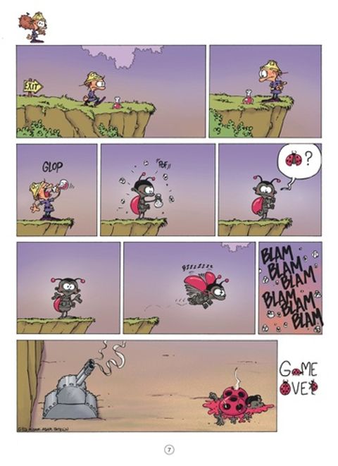 On fait difficilement plus simple comme jeu vidéo : un petit héros particulièrement maladroit, une princesse stupide, hystérique et presque aussi gaffeuse que son sauveur, et puis un tas de Blorks plus laids, cruels et vicieux les uns que les autres, qui n'ont qu'un but dans leur vie virtuelle : empêcher le premier de délivrer la seconde. Et si, au passage, ils peuvent les massacrer joyeusement, ils ne vont pas se gêner, entraînant ainsi l'inéluctable "Game Over" qui rythme chaque fin de page de la série. C'est sur ce canevas pourtant simple que Midam nous régale de gags muets et gore d'une efficacité redoutable.