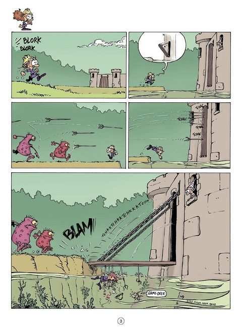 Le principe du jeu vidéo de Game Over ? Un petit barbare (pas toujours super adroit, il est vrai...) doit sauver une princesse (pas toujours super maline, avouons-le...). À partir de ce postulat limpide, Midam le génie du gag et toute sa team orchestrent des situations toujours plus loufoques et inattendues, dégénérant systématiquement en éclats de rire et d'hémoglobine ! Un humour transgressif mais résolument tous publics, plébiscité plus que jamais par les lecteurs du journal Spirou, qui trouvent dans ce prolongement de l'univers de Kid Paddle l'occasion de se régaler de l'intrusion des célèbres Blorks ! Game Over ? Au bout de 23 tomes, on redemande toujours du « Same player shoot again ». Une longévité exceptionnelle dans le monde de la BD.