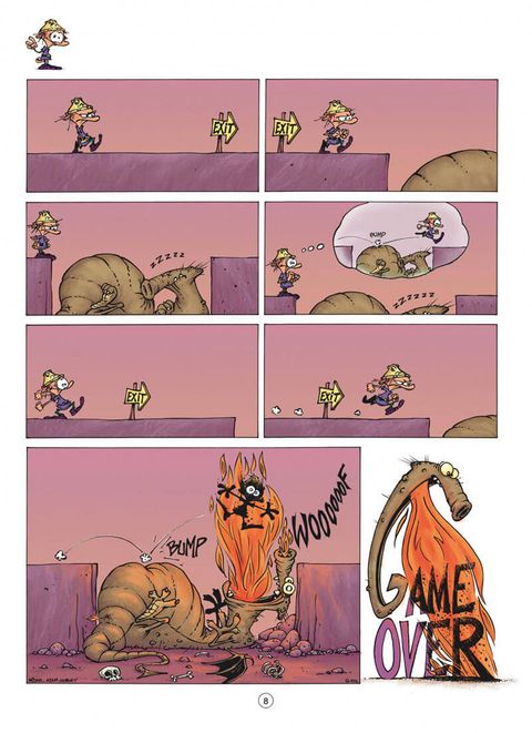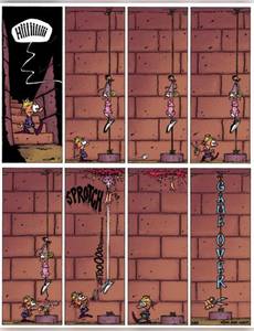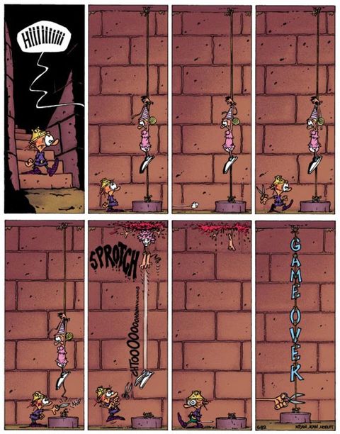 Princesse stupide contre Blorks déchaînés ! On fait difficilement plus simple comme jeu vidéo : un petit héros particulièrement maladroit, une princesse stupide, hystérique et presque aussi gaffeuse que son sauveur et puis des tas de Blorks plus laids, cruels et vicieux les uns que les autres, qui n'ont qu'un but dans leur vie virtuelle : empêcher le premier de délivrer la seconde. Et si, au passage, ils peuvent les massacrer joyeusement, ils ne vont pas se gêner, entraînant ainsi l'inéluctable « Game over » qui rythme chaque fin de page de la série. C'est sur ce canevas simple que Midam nous régale de gags muets et gore d'une efficacité redoutable.