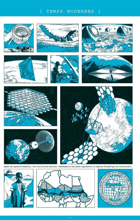 Après avoir montré, dans les trois premiers volumes, quelles représentations les hommes se sont forgées de l'évolution de l'Univers et de leur Histoire, Jens Harder se penche ici sur l'avenir. Quel sera celui de notre planète ? Quelle sera l'issue du changement climatique puis de l'effondrement des écosystèmes ? Quel rôle jouera la technologie dans notre survie ? Toutes ces questions et bien d'autres sont abordées dans ce volume qui clôt "Le Grand Récit".