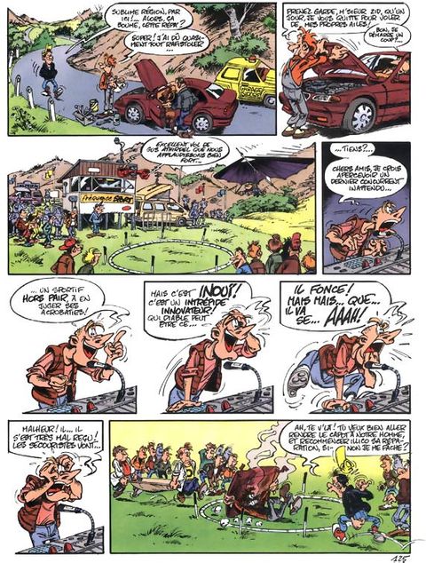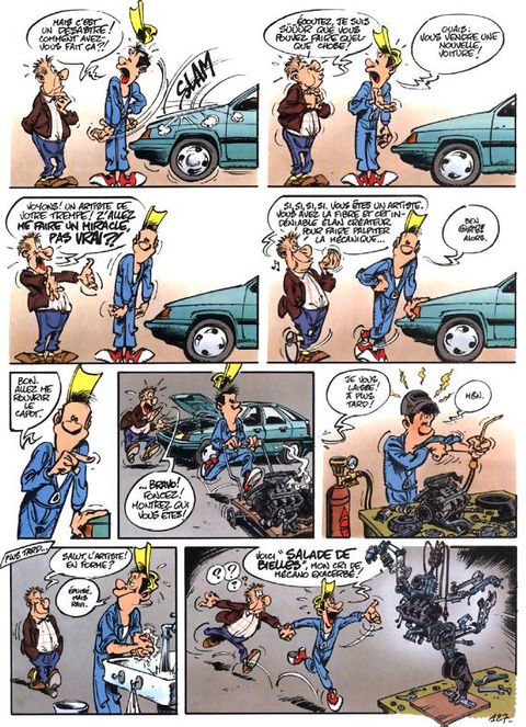Garage Isidore : ouvert 24 heures sur 24, 7 jours sur 7. Entretiens des gags et réparations des gaffes à volonté. Devis salé, addition carabinée et on paie au comptant même si on ne l'est pas (content). Découvrez les coulisses de la guerre des garages, qui oppose de pages en gags Lamordache et Isidore. De coups fourrés en coups de clefs à molette, tous les coups sont permis !