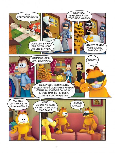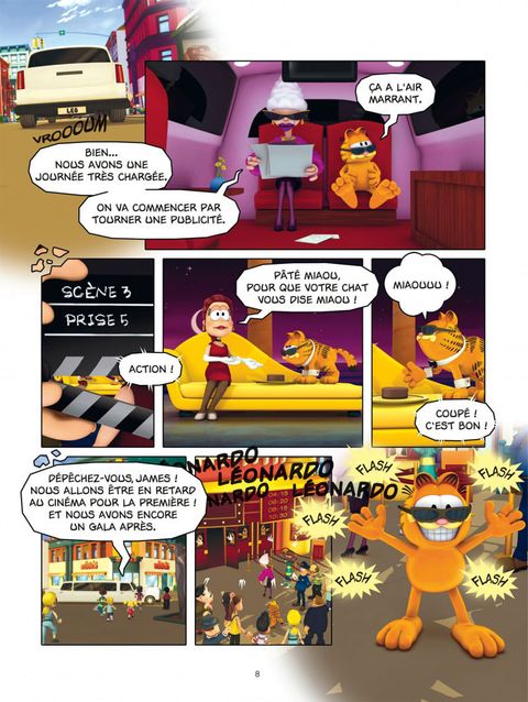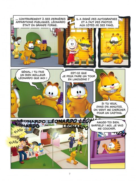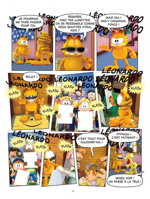 Léonardo est un chat star de cinéma ! C'est aussi le sosie de Garfi eld ; celuici lui propose donc d'échanger leurs vies. Limousines, fans et galas : c'est le rêve ! Mais très rapidement, Garfi eld regrette ses siestes, tranquille dans son fauteuil.