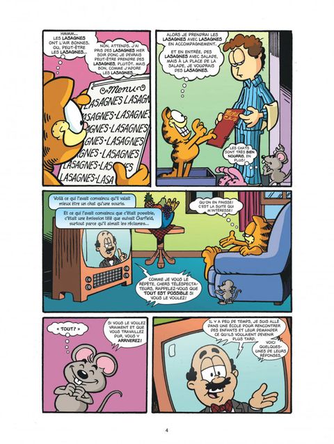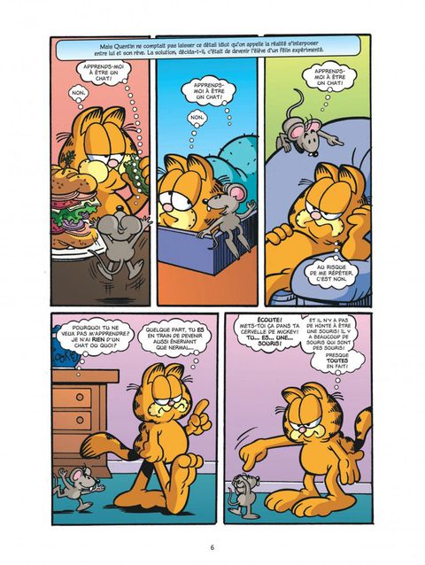 De nouvelles histoires de Garfield venues tout droit des États-Unis ! Quoi de mieux que la vie de chat ?! On dort, on mange, on dort, on regarde la télé, on dort. Mais tous les chats n'ont pas la vie rêvée de Garfield ! C'est ce que Quentin la souris va découvrir. En fait, être une souris, ce n'est pas si mal ! Enfin Halloween. et des bonbons à gogo pour Garfield ! Eh non ! Cette année, John ne veut rien lui donner. Mais ça ne se passera pas comme ça : Garfield a plus d'un tour dans son sac !