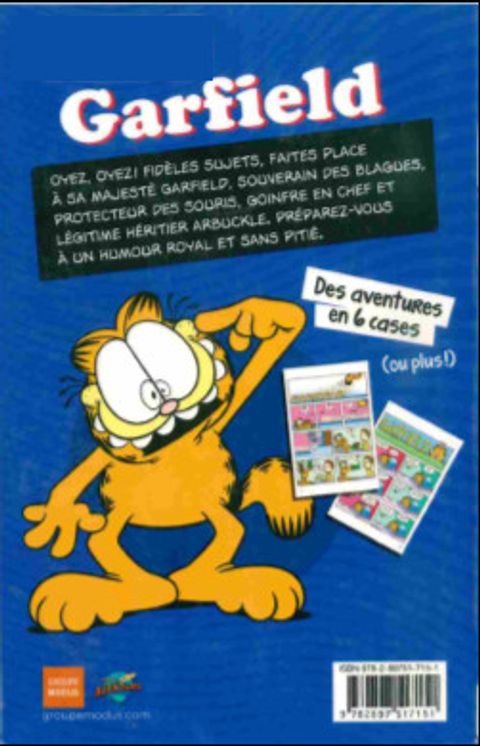 Une page, six cases, une histoireOyez, oyez! Fidèles sujets, faites place à Sa Majesté Garfield, souverain des blagues, protecteur des souris, goinfre en chef et légitime héritier Arbuckle. Préparez-vous à un humour royal et sans pitié.