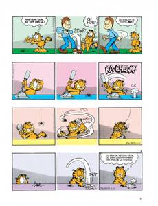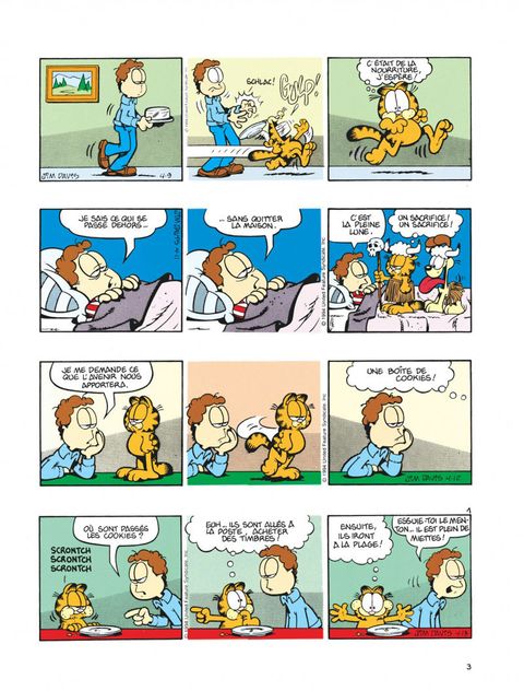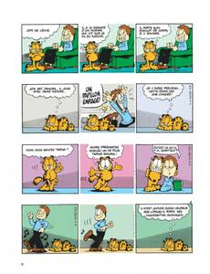 Il est très fortement question que ce charmant matou ait un site sur le net et son parc de loisirs dans l'Indiania ! Avec tout son petit monde : sa gamelle, sa gamelle et sa gamelle. Et aussi son fauteuil, sa couverture, sa télé avec les émissions sur les bienfaits du foie gras, ses pizzas, ses beignets et, accessoirement, Jon, son maître adoré, et son copain Odie, le modèle de chien ludique qui a perpétuellement la pêche - c'est insupportable. Et comment notre héros prend-il la nouvelle ? Comme d'habitude : à l'horizontale, le ventre en l'air. Il s'est tellement goinfré au déjeuner de six heures qu'il a raté le dîner, et ça l'inquiète : il va peut-être mourir de faim. Côté "vie active", il se fait piéger par une pelote de laine et voit défiler sa vie entière devant ses yeux comme le veut la coutume. Bilan : sa vie ressemble à un clip pour un fast-food. Mais graphiquement, le combat contre la pelote de laine est intéressant.