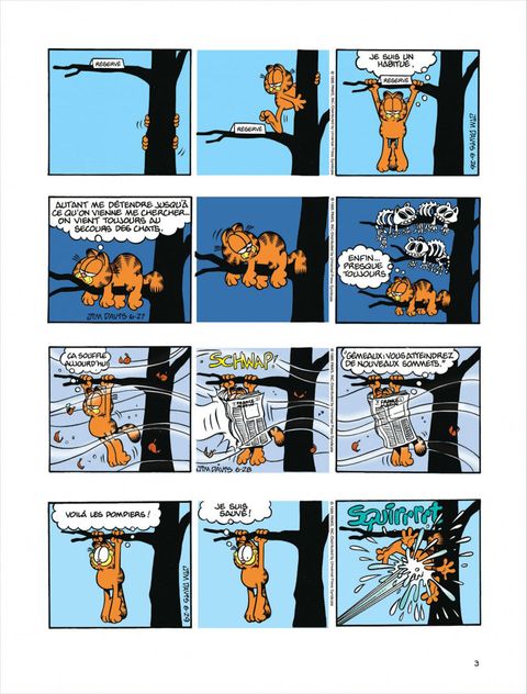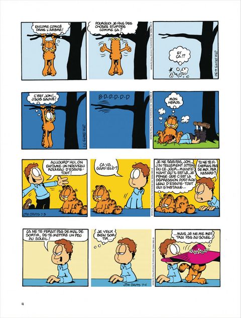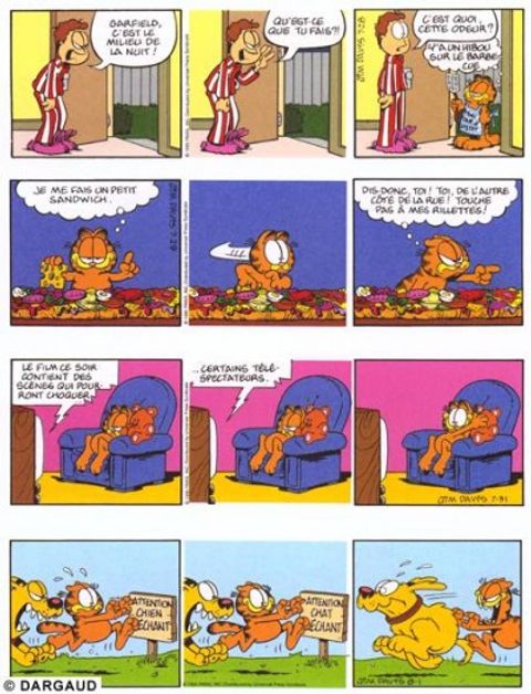 Le chat le plus paresseux de l'histoire de la BD voit le jour en 78 dans la presse quotidienne et dominicale américaine. Garfield, adulé par son maître, peut savourer tout à loisir le plaisir de ne rien faire; gras, toujours fatigué, toujours affamé, toujours bavard, il philosophe avec humour sur sa condition féline. En oubliant pas de s'alimenter et de se reposer, bien sûr...