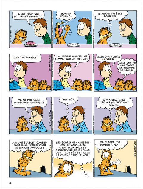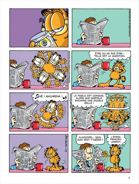 Une marche de plus pour Garfield dans l'escalier qui mène aux sommets de la gloire. Il est désormais une star de cinéma. Depuis la fin de l'été, un film dont il est le héros est à l'affiche dans les salles. Il n'a pas pour autant pris la grosse tête. En revanche, il conserve un gros ventre. Le chat bien nourri et plus paresseux que jamais le démontre, une fois encore, dans des gags célèbres dans le monde entier et qui font rire plusieurs générations de fidèles.