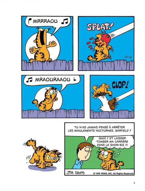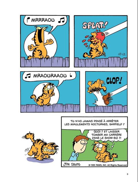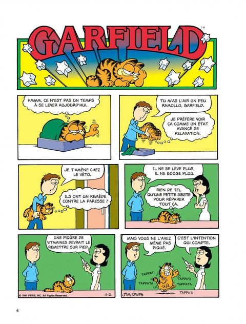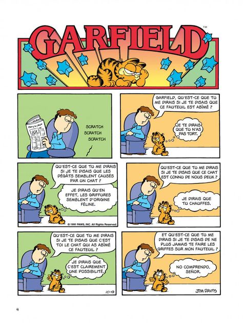 Le chat le plus paresseux de l'histoire de la BD voit le jour en 78 dans la presse quotidienne et dominicale américaine. Garfield, adulé par son maître, peut savourer tout à loisir le plaisir de ne rien faire; gras, toujours fatigué, toujours affamé, toujours bavard, il philosophe avec humour sur sa condition féline. En oubliant pas de s'alimenter et de se reposer, bien sûr... Les éditions Bagheera ont édité en 91 un album de Garfield. Dargaud a toutefois récupéré l'exclusivité de cette série.et poursuit l'édition de Garfield à raison de 2 titres par an.