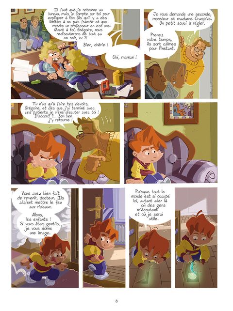 Grégoire doit repartir d'urgence au 17e siècle. Il vient de découvrir que la collégiale a été détruite à cette époque et il veut à tout prix prévenir Phidias et ses amis. Après un passage obligé chez son horrible tante, il arrive finalement à repartir dans le passé grâce au talisman caché sous le plancher de sa chambre. Il arrive sur le toit de la collégiale alors que sylvides et elfes bleus bataillent à coups de formules magiques, une querelle initiée par le chat-muse qu'il faut retrouver avant les sbires du mage noir qui pourraient, grâce à lui, connaître l'emplacement de la dernière porte. Phidias dévoile à Grégoire l'histoire de la fresque, et le jeune garçon comprend l'importance de son rôle dans la sauvegarde des créatures merveilleuses. Il faut absolument protéger la dernière porte permettant aux créatures de se sauver et récupérer la clé enchantée, un outil d'apprentissage indispensable pour devenir mage. Une clé semblable à celle que possède sa jolie cousine Edna. Grégoire est sous le charme mais doit à tout prix obtenir cette clé. Phidias est parti sauver le chat-muse qui a finalement été capturé. Obnubilé par Edna et sa clé, Grégoire les a complètement oubliés ! Cependant il n'est peut-être pas trop tard, et il part rejoindre son ami gargouille dans le passé où de redoutables dangers le guettent. Grégoire devra user de tout son courage et de toute son ingéniosité pour accomplir cette nouvelle mission périlleuse.