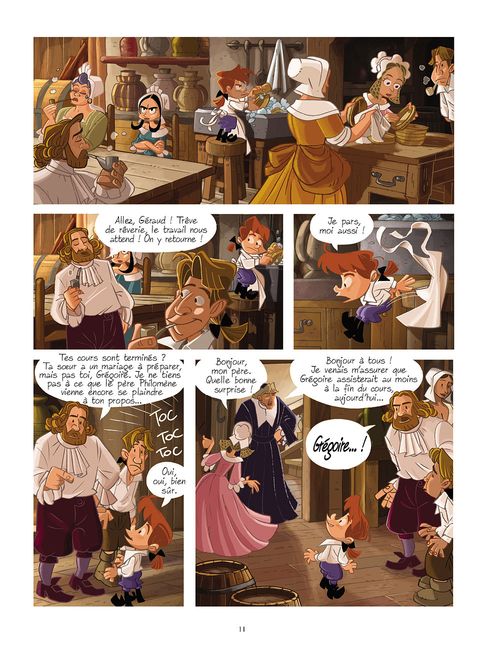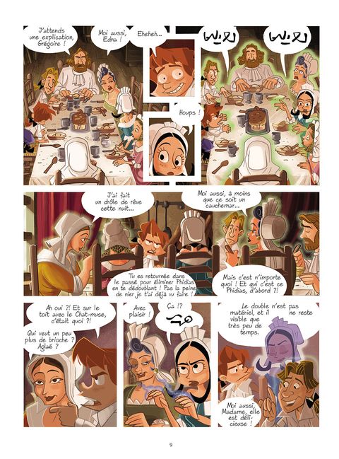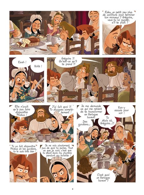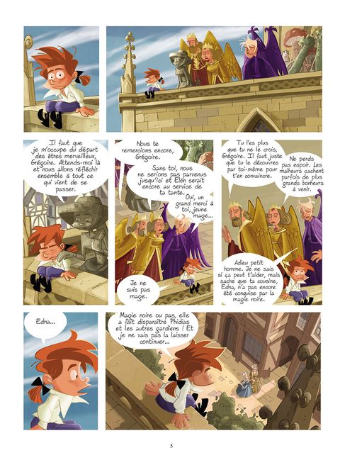 Quelle ne fut pas la détresse de Grégoire lorsque Phidias tomba soudainement en poussière ! Il semble que quelqu'un, dans le passé, fait tout pour l'empêcher de créer les gardiens. Pour Grégoire, il ne fait aucun doute que sa cousine Edna est derrière tout ça et il se doit de rester sur ses gardes. Il a compris qu'il allait devoir assister à la mort de plusieurs mages afin de les transmuter dans les statues qui formeront les gardiens de cette dernière porte qu'est la collégiale. Après quelques affrontements verbaux lors d'un goûter en compagnie de sa tante et Edna, Grégoire se retrouve puni avec cette dernière dans la bibliothèque de père Philomène où il découvre un livre étrange qui semble ne plus le quitter : son livre d'histoire de la magie. Edna en profite pour s'éclipser et Grégoire part à sa poursuite pour l'empêcher de nuire. Il utilise sa clé du temps et se retrouve propulsé dans le passé où il atterrit en plein cours de magie. Il y retrouve non seulement Edna, mais aussi Phidias, au temps où il était encore apprenti mage... et donc un jeune garçon comme lui !