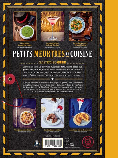 Aiguisez vos sens et réveillez vos papilles grâce à ces 40 recettes inspirées du grand écran, de la petite lucarne et de la littérature. De Miss Marple à Sherlock Holmes, en passant par Columbo, Jessica Fletcher ou encore Richard Castle et Remington Steele... 40 grandes références incontournables à (re)découvrir.