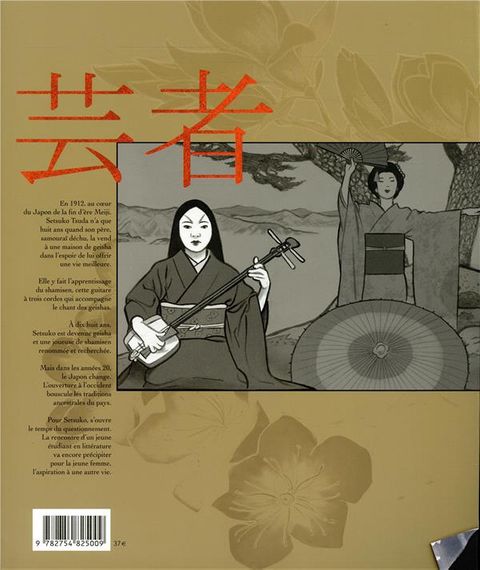 Les auteurs nous entraînent au coeur du Japon, à la fin de l'ère Meiji. Le destin romanesque d'une jeune Geisha, de son apprentissage difficile à la maîtrise de son art. Cet étui, tiré à 1200 exemplaires comprend les deux tomes de Geisha, le jeu du Shamisen. L'étui reprend une image inédite panoramique de 30,6 x 63,6 cm !