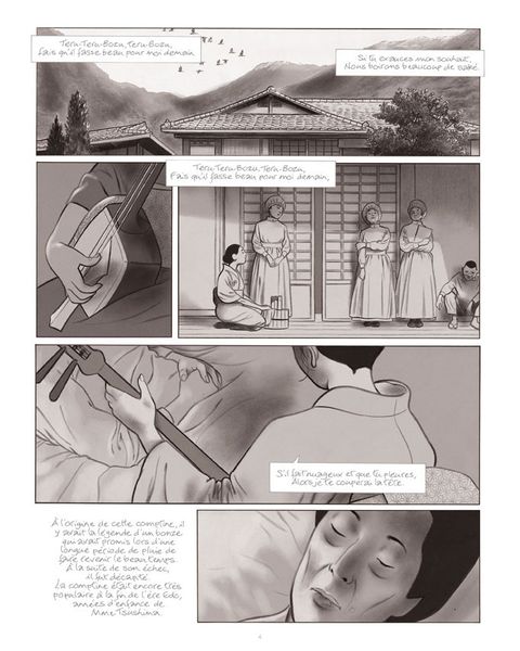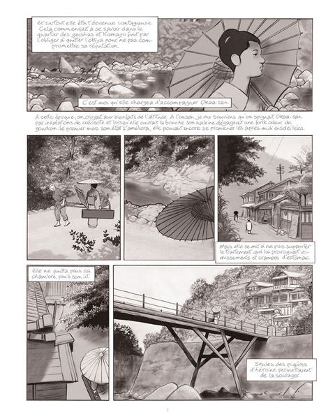 À 18 ans, Setsuko Tsuda est devenue une geisha, son apprentissage terminé. Elle a surtout perfectionné son jeu du shamisen, cette guitare à trois cordes qui accompagne le chant des geisha et dont la mélopée peut s'avérer des plus envoûtantes quand on en joue divinement. Mais pour le moment c'est à la montagne qu'elle exerce son art. Elle accompagne Okaa-san, la geisha qui l'a formée, gravement malade et contagieuse, qui tente de se remettre de son mal. Loin de l'okiya, Setsuko fait le point sur sa jeune existence. Car elle traverse une mauvaise passe depuis quelque temps. Elle ne progresse plus au shamisen, les clients la trouvent distante et elle a moins d'engagement. Est-elle déjà lasse de son métier ? À l'auberge où elle réside, elle rencontre Shuji Ariyoshi, étudiant en littérature française à Tokyo, qui veut devenir écrivain, dont la fantaisie et la joie de vivre la fascine.