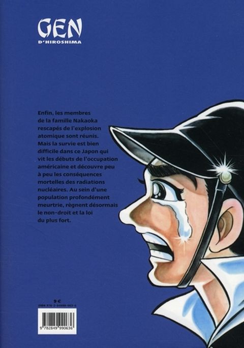 Lecture éprouvante que ce troisième tome ! Mais toujours aussi impressionnant de maîtrise. Sur la période couverte par ce tome, 20/08/1945 à 8/1947 Gen et sa famille poursuivent leur chemin entre quelques moments d'apaisement très vite rattrapés par de nouvelles conséquences tragiques de leurs statuts de victimes de La Bombe.