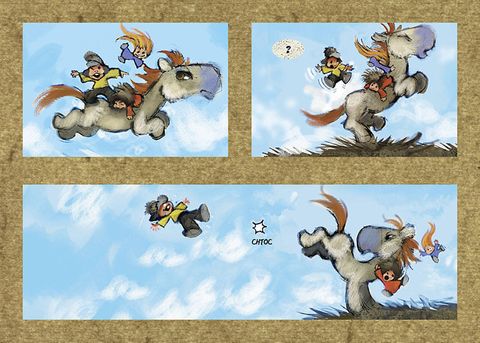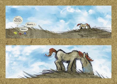 " Ce ne sont pas les trois petites miettes qui s'amusent avec le cheval sauvage, mais le cheval sauvage qui s'amuse avec les trois petites miettes... " Parole de Grand-Mère Mammouth