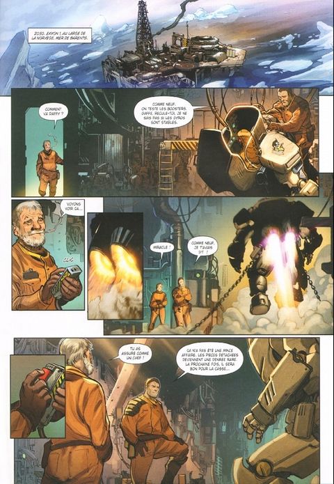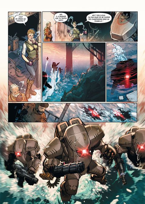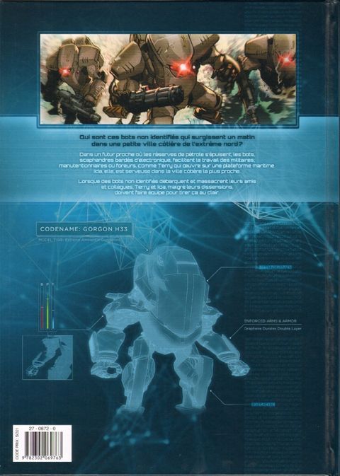 Un récit de science-fiction musclé aux enjeux écologiques très actuels. Enfilez votre exosquelette et plongez dans cet avenir à la frontière d'Abyss et d'Avatar ! Dans un futur proche où les réserves de pétrole s'épuisent, les bots, scaphandres bardés d'électronique, facilitent le travail des militaires, manutentionnaires ou foreurs comme Terry, qui oeuvre sur une plateforme maritime. Lida, elle, est serveuse dans la ville côtière la plus proche. Lorsque des bots non identifiés débarquent et massacrent leurs amis et collègues, Terry et Lida, malgré leurs dissensions, doivent faire équipe pour tirer ça au clair.