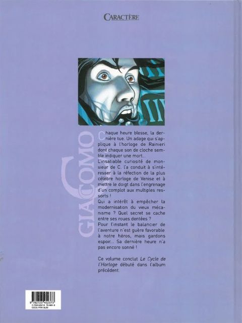 Giacomo, qui s'est intéressé d'un peu trop près à un étrange complot autour de la réfection de la plus célèbre horloge de Venise, se trouvait en très fâcheuse posture à la fin du tome précédent. Il est pourtant bien décidé à découvrir qui a réellement intérêt à empêcher la modernisation du vieux mécanisme et quel secret se cache dans ses engrenages... "La cruelle incertitude qui frappe monsieur de C. oblige les auteurs à pourvoir rapidement une suite à ce récit. Ils s'y engagent." Ainsi se terminait le dernier épisode de Giacomo C. Dufaux et Griffo ont tenu leur promesse et nous offrent aujourd'hui la fin de cette aventure haletante.