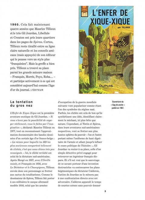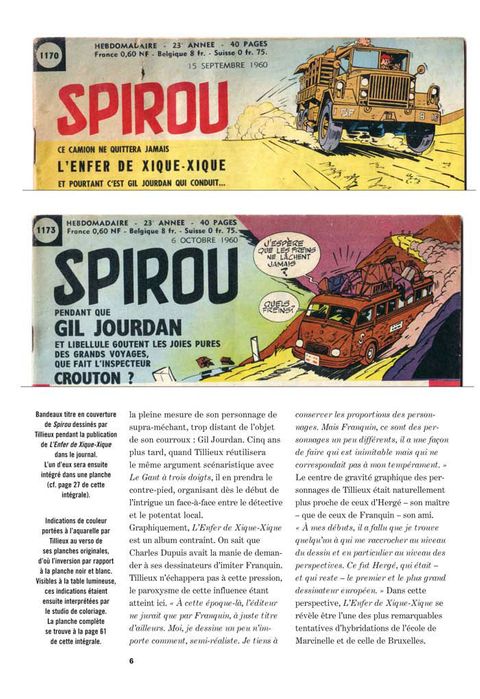 Auteur majeur de l'école belge, Maurice Tillieux a marqué le neuvième Art en introduisant l'humour dans la bande dessinée policière. 1960 : Gil Jourdan, Libellule et Crouton sont désormais bien installés dans les pages de Spirou. Tillieux a trouvé sa place parmi les grands auteurs maison, et participe activement à ce qui est considéré aujourd'hui comme l'âge d'or du journal.