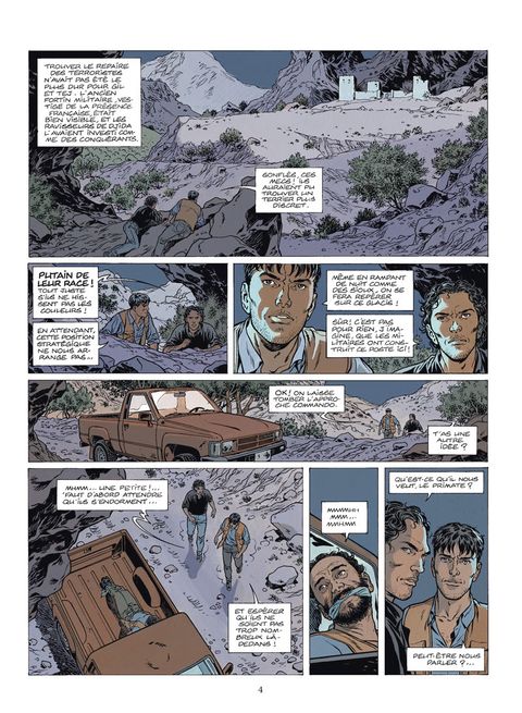Tous les espoirs de Djida Feschaoui reposent sur les épaules de Gil Saint-André, laissé en mauvaise posture, auprès de sa voiture en flammes à la fin du tome précédent. Incapable de se rendre au rendez-vous fixé par la belle jeune femme, il va lui falloir s'enfoncer au coeur du djebel algérien et risquer sa vie pour sauver celle de Djida et de Drissia, sa jeune soeur emmenée en Algérie pour y contracter un mariage forçé. Après avoir affronté un gang de proxénètes déterminés à tenter de sauver sa belle-soeur, le voici contraint de s'opposer non seulement à la famille de son amie, mais aussi à des terroristes prêts à tout pour ne pas laisser filer leur proies. C'est à une plongée hallucinante au coeur de drame algérien que nous invitent Jean- Charles Kraehn et sylvain Vallée. Et c'est dans un final époustouflant de réalisme où la tragédie humaine rejoint l'Histoire se clôt le second cycle des aventures de Gil Saint-André.
