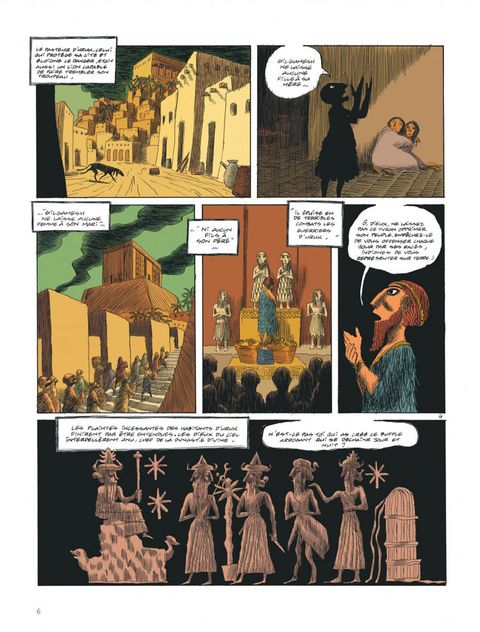 À l'occasion de la sortie des Cinq conteurs de Bagdad, réédition sous forme d'intégrale de ce chef d'oeuvre de la collection Poisson Pilote. La légende du roi Gilgamesh est l'une des plus anciennes légendes connues puisqu'elle date de l'époque mésopotanienne, au XVIIe siècle avant J.-C. ! Autant dire une base fabuleuse pour tous les amateurs de contes épiques et de mythologie. Gilgamesh est le roi légendaire d'Uruk, fils de la déesse Ninsuna et du demi-Dieu Lugalbanda. Jeune et beau, il a tout pour lui mais, malgré cela, il règne en despote sur son royaume. Le peuple décide alors de se venger en faisant appel au Dieu Anu qui charge la déesse Aruru de créer un homme semblable à Gilgamesh afin de rivaliser avec lui. C'est comme cela que le colosse Enkidu est créé ! Seulement les choses prennent vite une tournure imprévue puisque si les deux hommes se livrent bien bataille, c'est tout bêtement à cause d'une histoire de femmes. Et, qui plus est, ils finissent par se respecter à l'issue de leur conflit et même à s'apprécier ! Ce retournement de situation n'est pas sans poser quelques problèmes à la population d'Uruk et aux Dieux eux-mêmes.