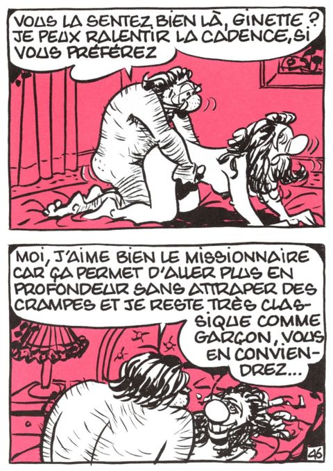 Toute sa vie, Ginette a fait commerce de son corps, et sa PME n'a jamais connu la crise. Pourtant, en racolant à l'écart des proxos, souteneurs et autres maquereaux, il aurait pu lui en arriver des misères. Les michetons, c'est pas tous des cadeaux ! Entre les pervers violents et les psychopathes du tobozo, elle aurait pu y laisser sa peau. Heureusement que Léon, commicroque à la maison poulaga, l'avait prise sous son aile. Ah, celui-là, ça se pourrait bien qu'elle en soit mordue ! Mais bon, il y avait aussi de quoi se poiler dans le métier avec les petites misères sexuelles de la gent masculine. Molosse maso, radin à binocles, orphelin pleurnichard, lapin précoce, peine-à-jouir, trop bien monté, narcisse mutique et yogi tantrique... Que des barres de rire ! Aujourd'hui, elle a beau être à la retraite, elle ne s'en garde pas moins quelques vieux clients sous la couette ; le croulant assidu, l'obsédé freluquet, le mateur coquet et le baron galant qui, lui, la verrait bien décorée de la liaison d'honneur ! C'est qu'elle en donne encore du bonheur, l'ancienne tapineuse au grand coeur ! Comme quoi, qu'on soit jeunot ou pépé, c'est encore dans les vieux pots qu'on balance les meilleures purées. Avec les confessions tout en gouaille d'une fille de joie, Florence Cestac, la cougar du neuvième art, se glisse dans la collection BD-CUL comme deux guiboles dans des bas de soie.