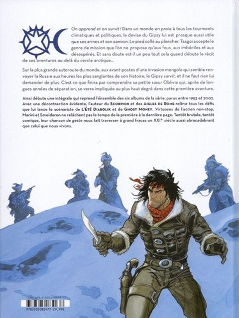 Une intégrale, qui reprend les six tomes d'une des séries les plus folles de la décennie ! Tout est en démesure : autoroute planétaire, refroidissement de la Terre, sacre d'un jeune tsar russe, résurrection d'une armée de Mongols partis sur les pas de Gennis Khan, multinationale omnipotente qui contrôle le transport terrestre, Coupe du monde de foot, etc. Au milieu de tout cela, Gipsy, un routier qui distribue les coups et les tirages acérées. Embarquez pour une saga futuriste en compagnie d'un bulldozer humain très charismatique...