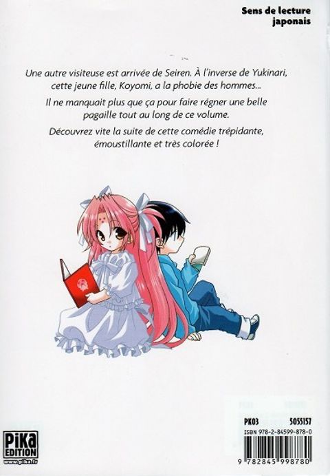 Une autre visiteuse est arrivée de seiren. A l'inverse de yukinari, cette jeune fille, koyomi, a la phobie des hommes... il ne manquait plus que ça pour faire régner une belle pagaille tout au long de ce volume. découvrez vite la suite de cette comédie trépidante, émoustillante et très colorée !