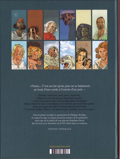Nadau, jeune ébéniste, s'est épris de la Gitane Angélina. Un amour déjà controversé au vu des relations entre les romanichels et les habitants de Lupiac, paisible village en ce début d'avril 1660. Mais Nadau est aussi mordu que déterminé : il épousera Angélina ! Or, sa soeur jumelle Léane a elle aussi le coeur qui bat pour l'artisan. Qu'à cela ne tienne, elles seront toutes deux 'sa femme'. Jetés sur la route puis à travers les mers à la recherche d'un havre de paix, Nadau, Angélina et Léane affrontent bientôt maints préjugés, menaces et dangers. L'intuition hors du commun des deux soeurs les mène à découvrir des crimes dont le trio se retrouve fatalement accusé ? à tort. Poursuivis par la malchance, les amants quittent donc la France pour Saint-Domingue, où de nouveaux dangers et de nouveaux défis les attendent... Car si l'homme est un loup pour l'homme, il leur faudra une bonne dose de courage et de témérité pour échapper à la bêtise et à la violence de leurs semblables. Aventures, combats à l'épée et amours contrariées, voici LE grand récit de Bonifay et Duval, dans la pure veine de la flibusterie. Huit ans après la parution du premier volume, cette intégrale rassemble l'histoire complète de ces Gitans pas comme les autres... Cap sur le grand large !