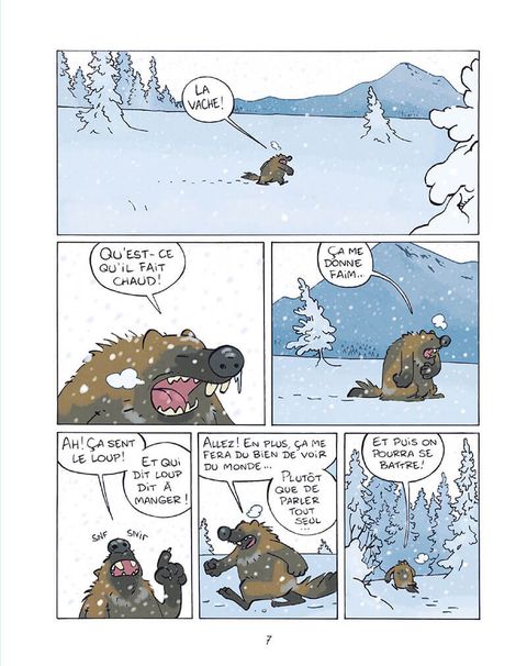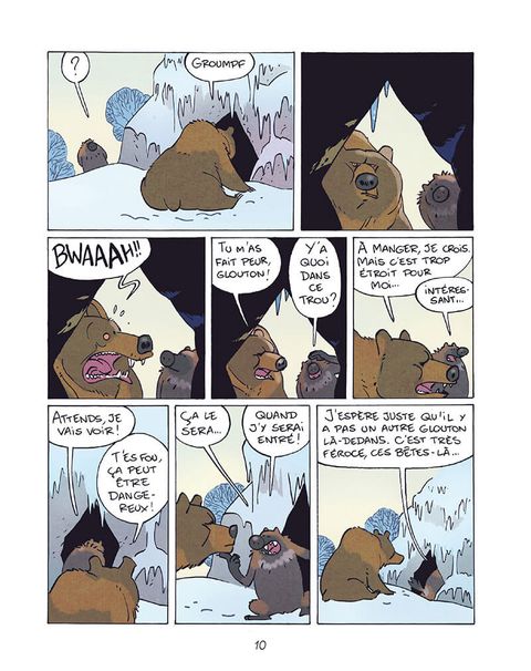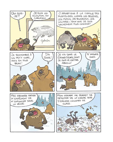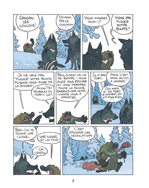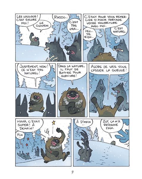 Bagarreur à ses heures mais le plus souvent génial baragouineur, fin tacticien le matin ou menteur patenté le soir, Glouton n'a qu'un seul but : manger le plus possible en faisant le moins d'effort possible ! Pourtant, on aurait pu croire les prédateurs nombreux sur la banquise : ours, loups... Mais si personne n'a jamais pu vérifier ni la force ni l'habilité de Glouton à la baston, c'est qu'il y a une raison : face à cette teigne et ce bonimenteur de génie, personne ne résiste ! Ce premier tome nous amène à découvrir un héro 100% grinçant, qui, égoïste et sans morale, écume le Grand Nord. Et, quand ce solitaire s'entiche d'un chien, Médor, il n'a pas encore décidé s'il allait le manger, en faire un fauteuil... ou un ami ! En attendant, il prétend juste avoir fait caca dessus...