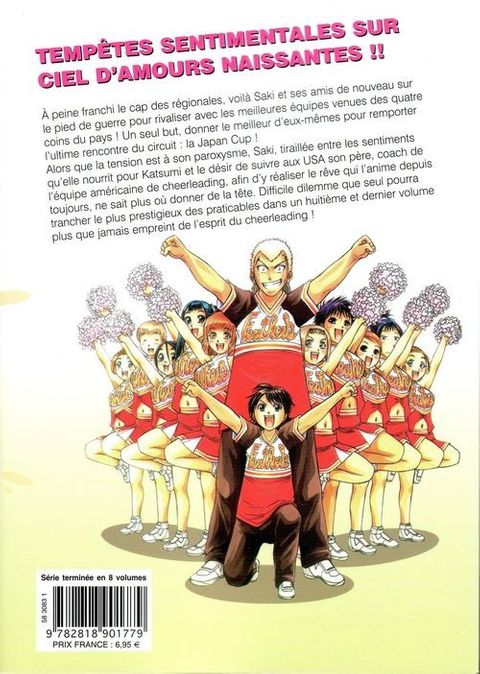 La passion du cheerleading enflamme les coeurs et les corps ! Étincelles garanties ! À peine franchi le cap des régionales, voilà Saki et ses amis de nouveau sur le pied de guerre pour rivaliser avec les meilleures équipes venues des quatre coins du pays ! Un seul but, donner le meilleur d'eux-mêmes pour remporter l'ultime rencontre du circuit : la Japan Cup ! Alors que la tension est à son paroxysme, Saki, tiraillée entre les sentiments qu'elle nourrit pour Katsumi et le désir de suivre son père, coach de l'équipe américaine de cheerleading, aux USA afin d'y réaliser le rêve qui l'anime depuis toujours, ne sait plus où donner de la tête. Difficile dilemme que seul pourra trancher le plus prestigieux des praticables dans un huitième et dernier volume plus que jamais empreint de l'esprit du cheerleading !