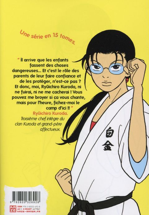 ""Il arrive que les enfants fassent des choses dangereuses... Et c'est le rôle des parents de leur faire confiance et de les protéger, n'est-ce pas ? Et donc, moi, Ryûichiro Kuroda, ni ne fuirai, ni ne me cacherai ! Vous pouvez me frapper ou m'écraser si ça vous chante, mais pour l'heure fichez -moi le camp d'ici !!"" Ryûichiro Kuroka, troisième chef intègre du clan Kuroda et grand-père affectueux.