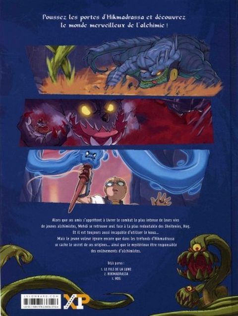 Alors que ses amis s'apprêtent à livrer le combat le plus intense de leurs vies de jeunes alchimistes, Mehdi se retrouve seul face au plus redoutable des Sheiteinies, Hog. Et il est toujours aussi incapable d'utiliser le koua... Mais le jeune voleur ignore encore que les tréfonds d'Himkmadrassa se cache le secret de ses origines... ainsi que le mystérieux être responsable des enlèvements d'alchimistes.