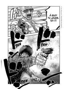 Kurozuka tue un peu trop facilement ! Page 169, il a eu une otage et son flingue pointé sur sa tête. En face, 2 types l’ont en joue. Kurozuka réussi à les tuer. C’est juste impossible car même s’il tirait sur l’un, l’autre l’aurait tué… Mis à part ce point, j’ai (...) Voir le commentaire