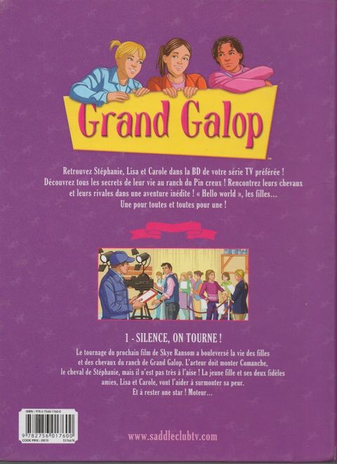 Tous en selle ! Grand Galop, LA série d'équitation connaît - enfin - une adaptation en bande dessinée. Et dans cette aventure inédite, la vie d'habitude si tranquille de Carole, Stéphanie et Lisa au ranch du Pin creux, s'apprête à être bousculée par le tournage du prochain film de Skye Ransom ! Amitié, entraide et joie de vivre sont toujours au programme de ce club d'équitation pas comme les autres !