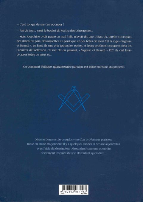 Philippe, 30 ans, parisien, voulait entrer en Franc-Maçonnerie. Commence alors pour lui un quotidien loufoque, tendre, très humain avec les Frères et Soeurs de sa Loge. Loge qui subit des problèmes organisationnels risibles. Jérôme Denis, journaliste et franc-maçon au Grand Orient nous propose une histoire inspirée de son expérience, dévoilant « la réalité de la Maçonnerie » loin des scandales financiers ou des grands élans mystiques, présentant ses paradoxes, ses ridicules, et la recherche bancale et maladroite d'un idéal.